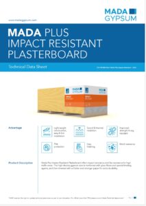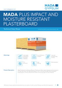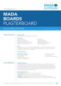 TDS FileActionTDS-PB-R11-Rev2 Mada Plus Acoustic - 2024Download FileActionTDS-PB-R01-Rev2 Mada Plus Fire & Moisture Resistant - 2024Download FileActionTDS-PB-R04-Rev2 Mada Plus Fire Resistant - 2024Download FileActionTDS-PB-R05-Rev2 Mada Plus Impact Resistant - 2024Download FileActionTDS-PB-R14-Rev2 Mada Plus Impact and Moisture Resistant - 2024Download FileActionTDS-PB-R02-Rev2 Mada Plus Regular - 2024Download FileActionTDS-PB-R06-Rev2 Mada Plus Shaft Board - 2024Download FileActionTDS-PB-R03-Rev2 Mada Plus Moisture Resistant - 2024Download MSDS FileActionMSDS-MADA-Plasterboard-Rev-1-22-01-2023.pdfDownload