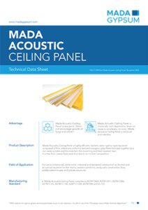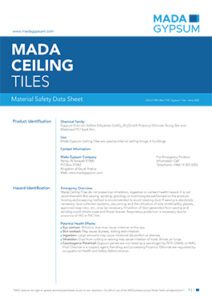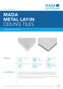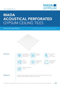 TDS ViewView FileActionTDS-CT-R07-Rev2 Acoustical Perforated Gypsum Ceiling Tiles-2024Download ViewView FileActionTDS-CT-R01-Rev2 Gypsum Tiles - 2024Download ViewView [ FileActionTDS-CT-R09-Rev2 Mada Acoustic Ceiling Panel-2024Download ViewView FileActionTDS-CT-R20-Rev2 Metal Tiles Lay-In_Lay-On-2024Download ViewView FileActionTDS-CT-R02-Rev3 T24-2024Download ViewView FileActionTDS-CT-R08-Rev2 Access Panel-2024Download MSDS View View FileActionMSDS-MADA-PVC-Ceiling-Tiles-Rev-1-22-01-2023-1.pdfDownload View View FileActionMSDS-MADA-Suspension-System-Rev-1-22-01-2023.pdfDownload View View FileActionSDS MADA Metal TILES REV2 2025Download
